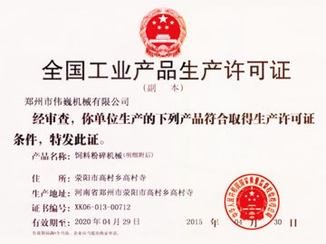 鄭州市偉巍機械有限公司獲得河南省農機推廣許可證和質量監督檢驗合格證。