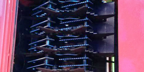 多錘片設計提高物料破碎率。并且錘片雙面可用,鋸齒錘片磨損無棱角后,用戶可以自己調頭更換,但是錘片不能互相更換,也不能隨便換新,以免影響轉子運轉的平衡。