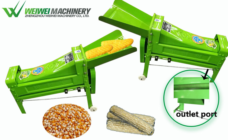 工作時,玉米由進料口喂入,玉米通過螺旋推進軸運轉和滾筒內的撞擊,使玉米粒和玉米芯完整分離,玉米粒從側面風口排出,玉米芯從脫粒機尾部排出,脫粒干凈,運轉穩定。